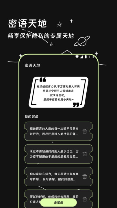 4、点击【密语天地】进入,在这里都是可以倾诉自己的秘密。