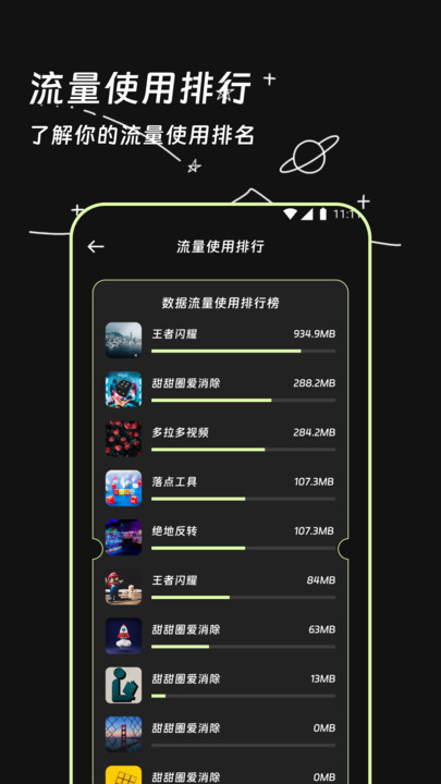 3、按日周月维度展示各应用消耗排行,用色条长度直观对比,谁偷流量一目了然,卸载或禁用高耗 App 后整体用量普遍下降一成。