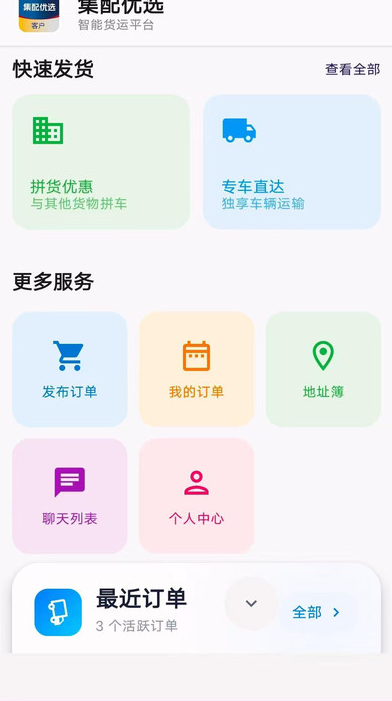 集配优选客户端是为用户提供的运货找司机应用,这里的司机们都是随时在线的,用户可以随时来这发布你的运货需求,系统将会快速为你匹配司机,匹配成功了任你随时和司机在线联系,你也可以查看司机的个人信息资料,让你快速解决运输的困扰,个人订单是可以随时查看的,并且也可以设置订单提醒功能,无论是专车运输还是拼车运输都是可以的。