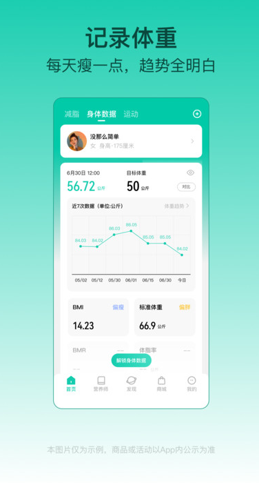 2、体重记录与图形展示让用户清晰掌握管理进度,及时调整饮食或运动方案,避免盲目管理。