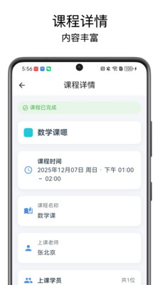 1、课程详情支持添加教材、知识点、作业要求,学员课前清晰知晓学习重点,预习更有方向。