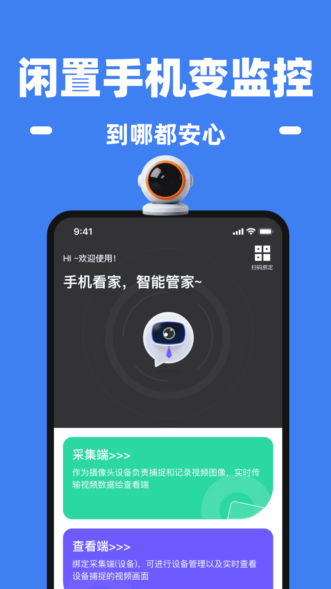 3、闲置手机秒变摄像头,一键扫码绑定,无需额外硬件,出差旅行把旧机放窗台就能远程看家,环保又省钱。
