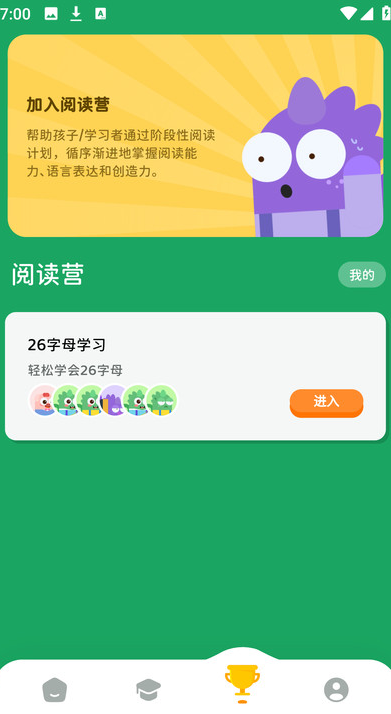 3、累计打卡天数达标可解锁专属绘本、阅读勋章等奖励,通过正向激励增强孩子的阅读积极性。