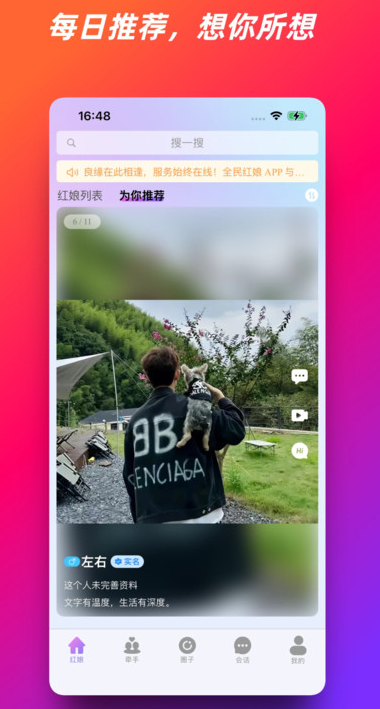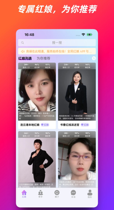 1、红娘会根据用户画像与需求,主动推荐优质匹配对象,避免用户盲目浏览。