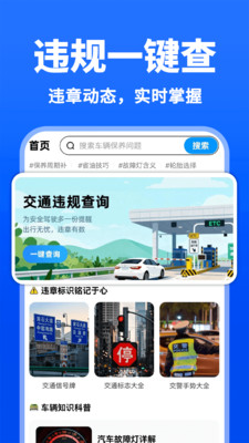1、是一站式交通违规速查APP,精准查询违章、智能预警提醒,搭配交规学习与多车管理,让车主用车更安心。