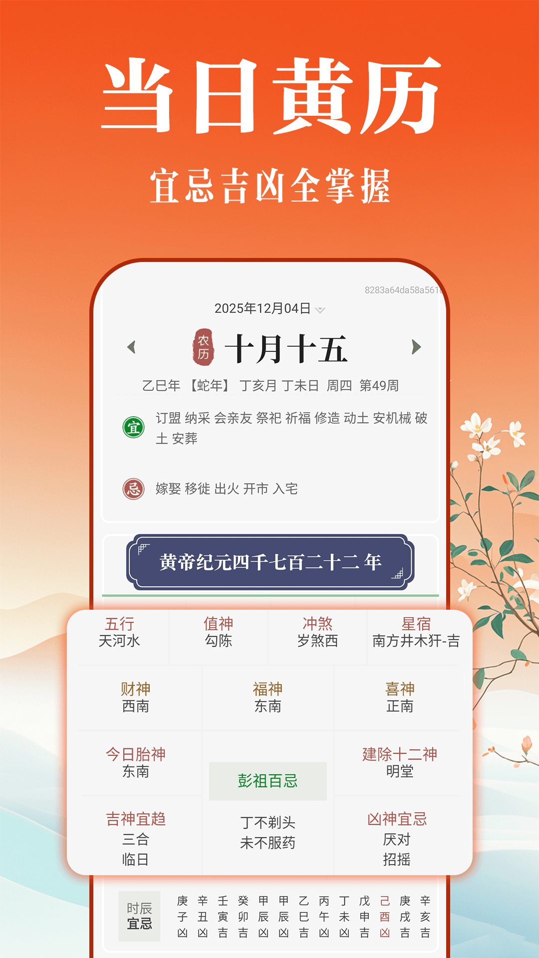 2、用户可以快速查看每日的吉时和宜忌,为生活和出行提供精准的参考。