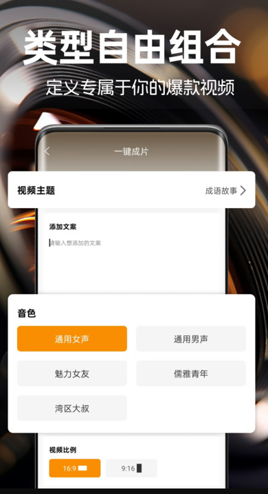 1、用户选定模板或素材后,可通过一键创作功能启动智能创作流程。