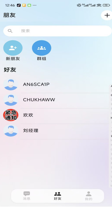 4、支持好友分组管理,用户可根据社交关系类型自定义分组,简化好友查找流程。