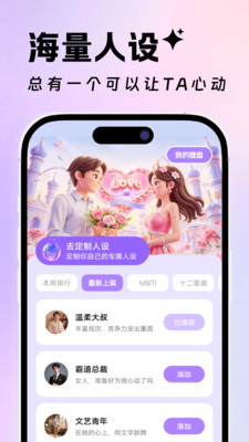 1、上百种人设随心切换,暖男、御姐、幽默达人、温柔恋人等全覆盖,不管你想走哪种风格,都能找到专属聊天模板。
