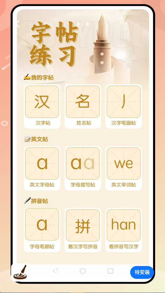3、探索汉字板块,从基础笔画到复杂结构,循序渐进地掌握汉字书写精髓,感受汉字之美。