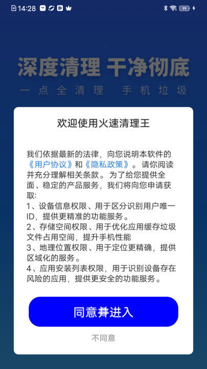1、可以直接下载最新版本的软件,进入的时候需要先同意隐私权限。
