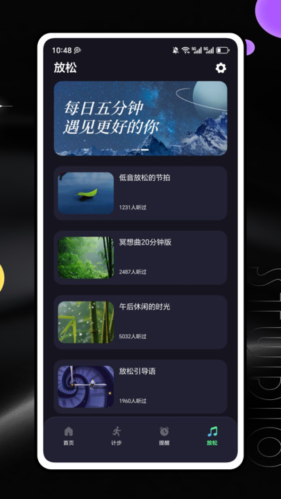 4、用户还可在app内体验到放松音乐和冥想时刻。