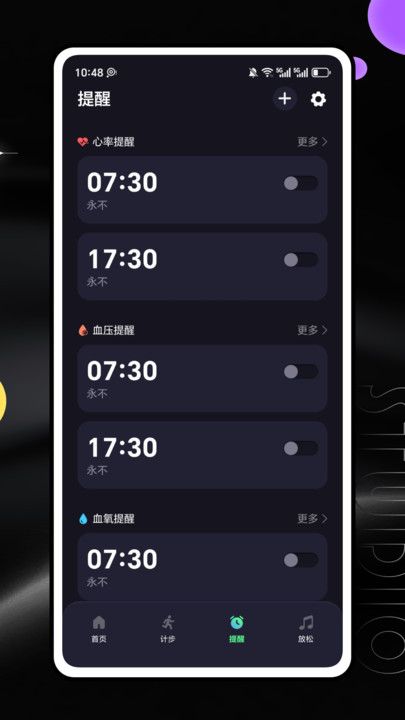 3、app还提供了健康监测提醒服务,可自定义提醒时间。