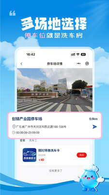 2、支持多场地自由选,小区车位、公司停车场、户外站点全覆盖,无论在哪,都能享受标准化专业洗车服务。