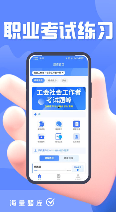 工会社会工作者考试题峰app是一款很实用的线上备考刷题学习软件,每个考生都是可以来这获得你想要的备考学习资源,资源将会随时更新,并且也可以确保都是最新的,任你随时进入答题专区一键在线选择答题模式,拿起手机就可以无限在线学,系统将会记录你的学习足迹,你也可以及时来这进行难题求助,大大提高个人学习效率。