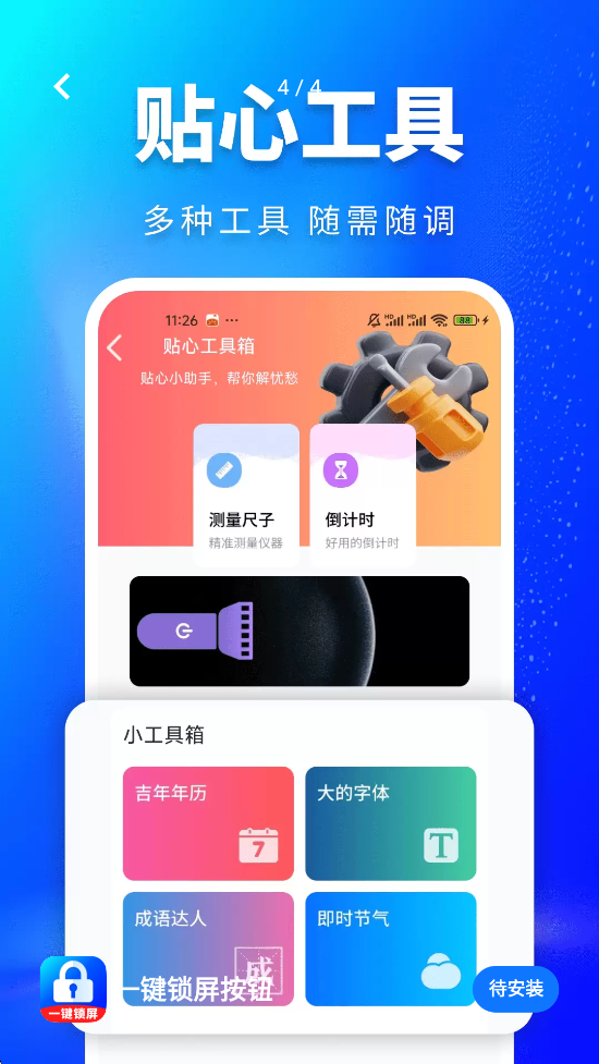 2、贴心工具箱,集成多种常用工具,一键直达,提升使用效率,让您的手机成为真正的多功能助手。