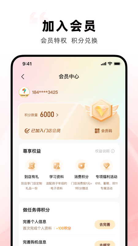 1、用户可注册成为学而思门店会员,享受会员专属优惠、积分兑换等丰富权益,让每一次消费都物超所值。
