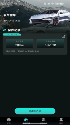 3、添加爱车保养记录,可以更好的查看爱车档案和管理车辆;
