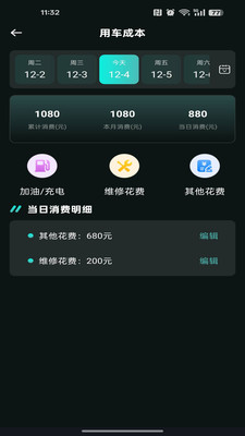2、收支数据一目了然,支持按周月年筛选查询,油费占比、保养频次直观呈现,帮车主发现消费规律,优化养车支出。