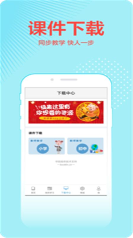 3、 设有专门的下载中心,为中小学教师提供可直接用于课堂教学的同步课件等资源的下载服务。
