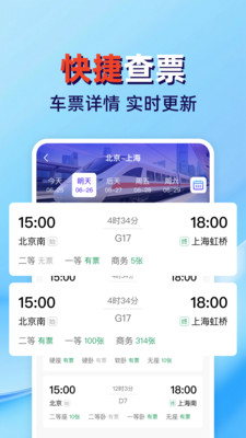 1、支持实时查看高铁、动车的余票和票价信息,确保用户获取最新、最准确的数据。