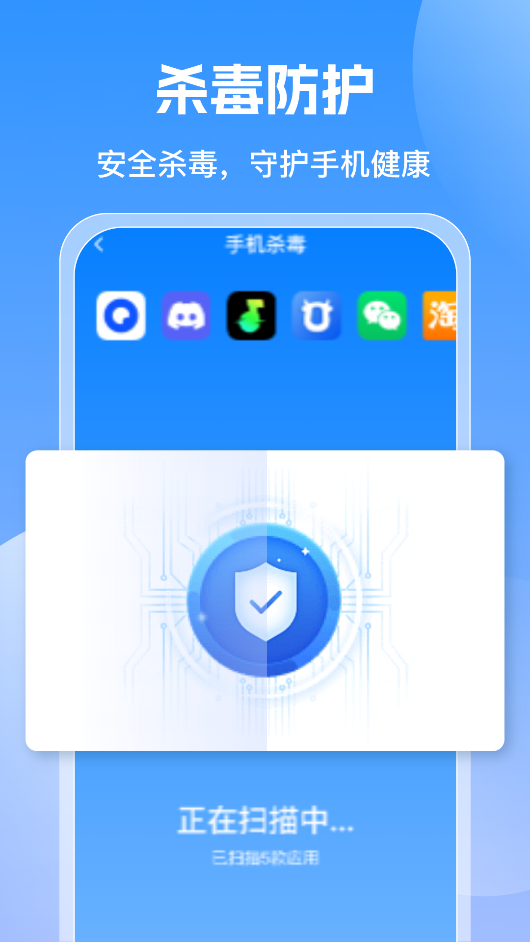 1、实时监测手机安全风险并提供病毒查杀服务,对清理过程进行安全检测,保障文件与系统安全。