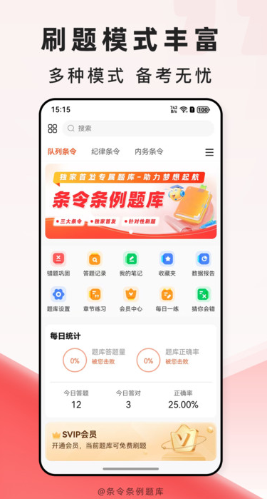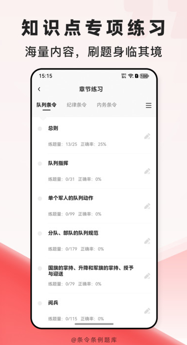 条令条例题库app是一款实时在线轻松备考应用,线上提供的备考资料丰富多样,不同阶段的考生们都是可以轻松来这找到想要的备考资料,支持一键在线刷题,也支持一键在线复习,还支持一键查看错题或者是难题,提供的备考大纲也将会随时更新,让每个考生都是可以有针对性的复习,拒绝盲目在线学习,学习更高效。
