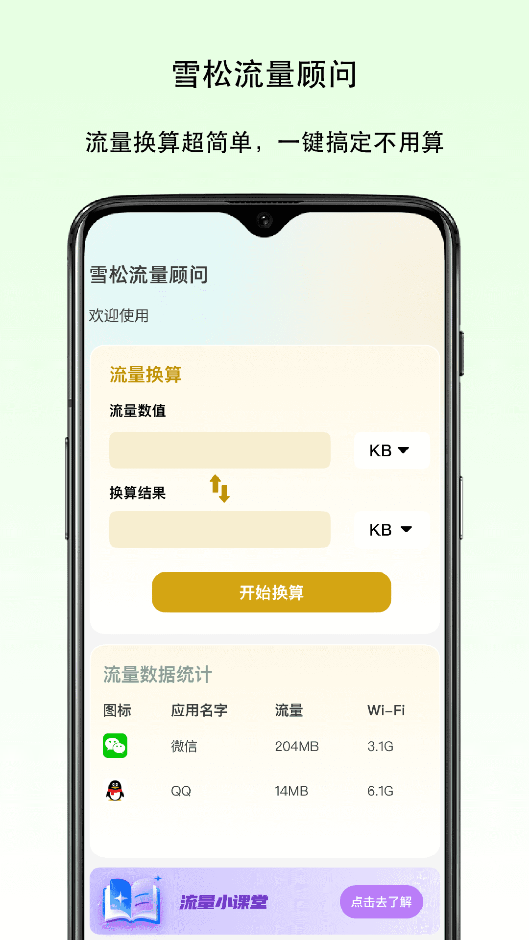 1、是一款功能全面的手机流量管理软件,能够精准地将流量单位进行换算。