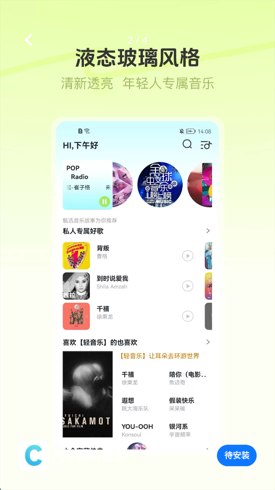 1、在车载应用商店搜索汽车畅听音乐软件,下载安装即刻开启车载音乐听歌新体验。