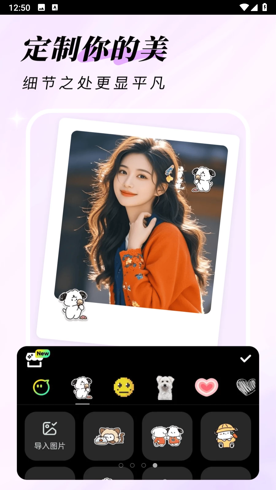 3、除基础修图外,提供丰富萌趣贴纸与动态特效,为照片增添创意与趣味,提升视觉表现力。