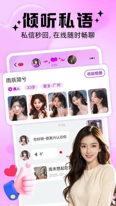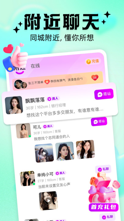 2、实行严格的真人身份认证流程,确保用户资料的真实性,构建真诚交友环境。