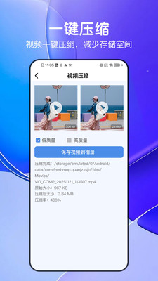 1、独家无损压缩技术来袭,图片视频体积缩减80%+,画质却毫无损耗,兼容JPG、MP4等多种主流格式。