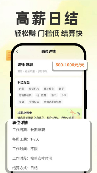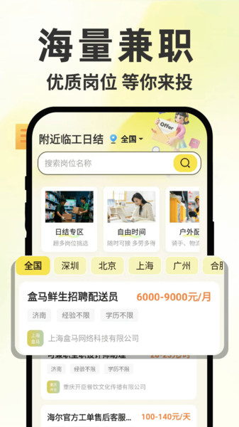 2、提供多维度筛选工具,支持按薪酬、地点、工作时长等条件快速定位合适岗位,帮助求职者高效匹配工作。