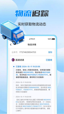 2、物流跟踪,实时更新,展示包裹从寄出到送达的每一个环节,让您随时掌握包裹动态,安心等待。