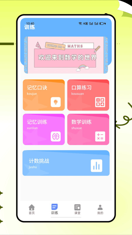 2、在训练页面,带来记忆口诀、口算练习、记忆训练等不同板块。