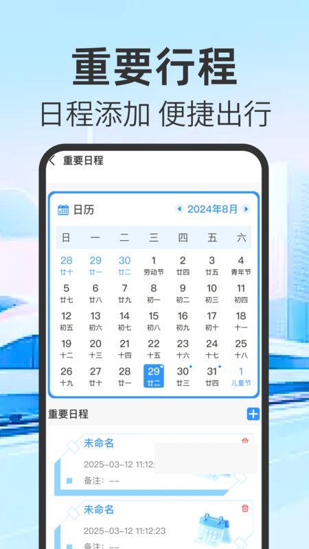 2、支持自定义添加目的地气象信息,并关联行程卡片,提供出行期间天气趋势提示,助用户提前准备衣物与物品。