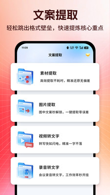 3、搭载先进自然语言处理模型,支持多形式文案提取,粘贴链接或上传音视频、图片,即可高效获取合规文稿。