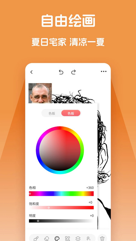 2、自由涂色模式提供多种笔刷类型(如水彩、马克笔、喷枪等)与可调色板,支持不同艺术风格的探索与质感呈现。