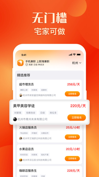 职海兼职APP是一个专注于为求职者提供灵活、可靠兼职机会的专业招聘平台。app深度聚焦于灵活就业领域,汇聚了涵盖线下活动、线上任务、技能服务、零售导购等多种类型的多元化工作机会。平台对入驻商家进行严格的资质审核,并建立了一套从在线报名、任务管理到快速结算的完整服务体系,为用户创造时间自由、回报即时、风险可控的优质兼职体验,是学生、白领及希望利用碎片时间增加收入人群的理想选择。
