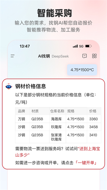1、对于需要定期采购钢材的用户,它节省了大量寻找供应商和比对价格的时间,让采购工作更高效。