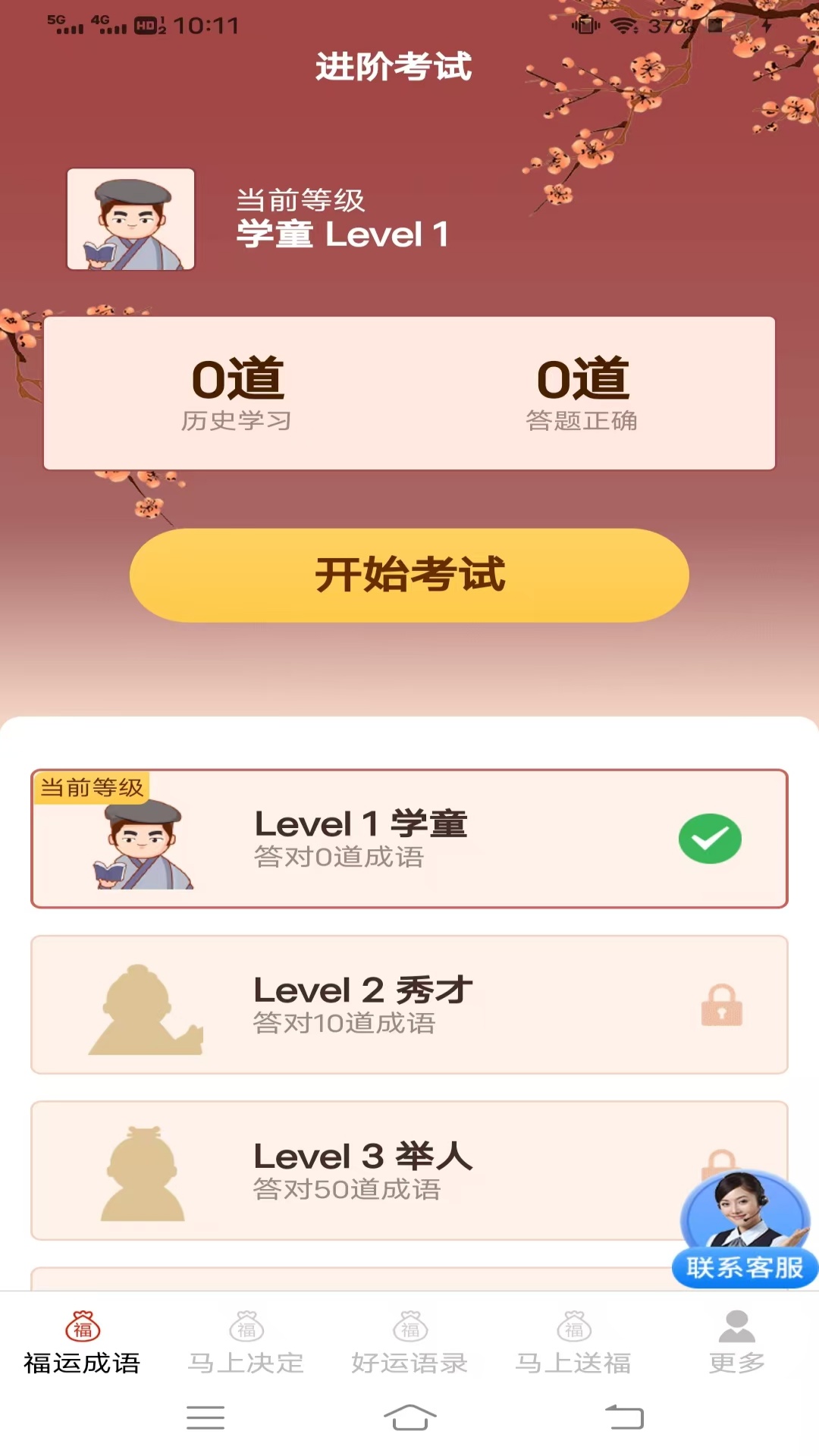 好马福运长app是一款集合了多种不同功能于一体的手机软件,每天都会有超多的成语题目在线更新,通过在线答题可以帮助你增长更多的成语知识,同时也可以掌握更多的成语词库;这里还具备了抽签的功能,需要决定什么都可以自定义设置,点击开始就可以快速的抉择,再也不用为做决定而发愁。