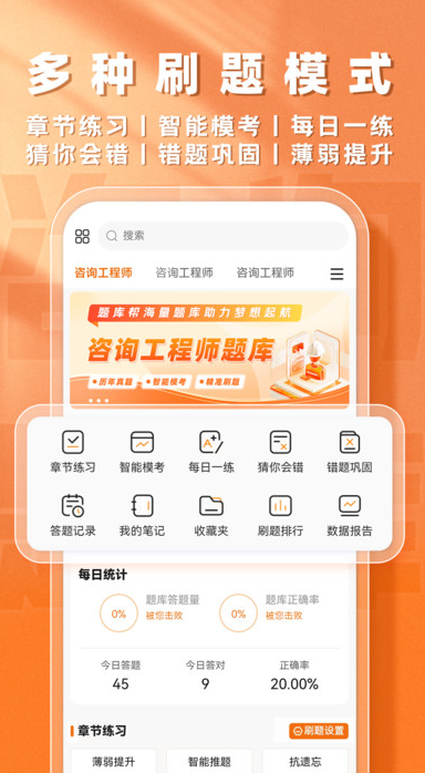 咨询工程师题库帮app是一款汇集了海量优质题库的在线备考学习软件,每个考生都是可以第一时间来这查看最新的备考信息资料,如备考题库,备考大纲,备考资讯,这样备考更轻松更省心,备考的过程中也不需要担忧自己备考无效,如果哪里不懂还可以直接进入章节进行复习,个人也可以定制你的复习计划,让你实现学习自由。