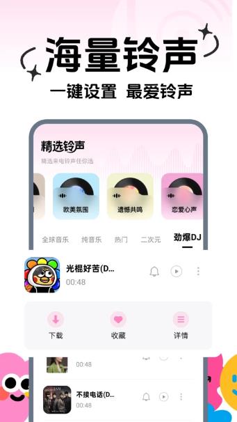2、用户可以一键免费设置这些音乐作为来电铃声,让每一次来电都充满期待和惊喜。