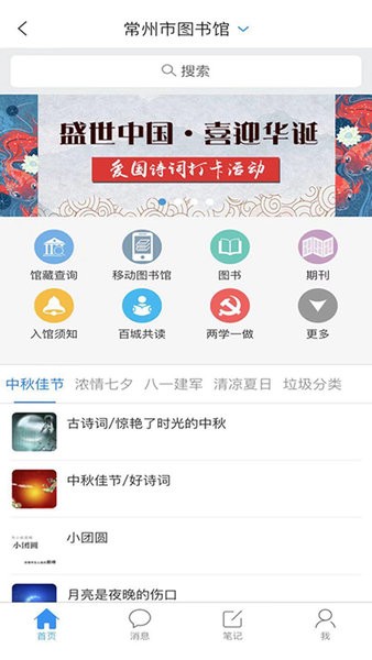 常州市图书馆app是一款集电子书阅读、图书馆服务he 学习资源于一体的综合型阅读应用,它为你提供了一个海量的移动书库,包含丰富的电子图书、中外文献与报刊杂志,它还能关联你所在的城市图书馆,方便你在线查询馆藏、管理个人借阅,并集成了名师讲座、学习笔记等实用功能,打造一个随身携带的个人学习中心。