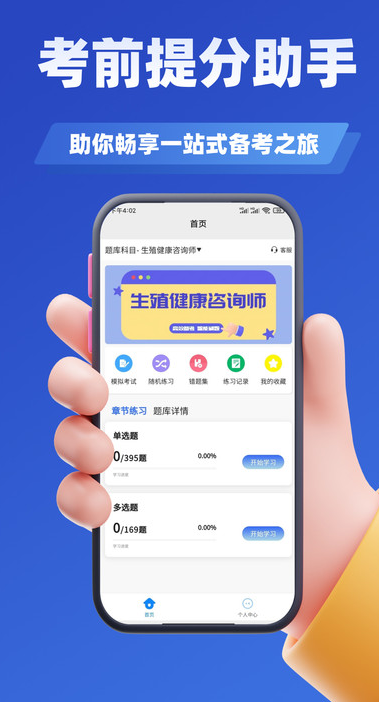 生殖健康咨询师考试题库app是一款可以让考生们随时掌握有价值的备考学习资源应用,在这学习不需要有任何的顾虑,任你及时查看最新的备考资料,也可以及时来这定制你的个人学习计划,并且也可以快速在线刷历年的真题,系统将会根据你的答题为你进行错题和难题收藏功能,方便用户可以重复进行温习,也可以大大享受高效学习。