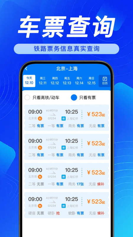 全国铁路火车票查询app是一款优化你完整出行体验的本地交通票务应用,它不仅能快速查询各类车次、实时对比票价与余票,更将购票、行程规划与目的地探索整合于一体。你可以从查询班次开始,到完成支付、获取车站导航,乃至浏览目的地旅行攻略,所有环节都能在这里流畅完成,为你的每次出行提供从起点到终点的清晰指引和全面支持。