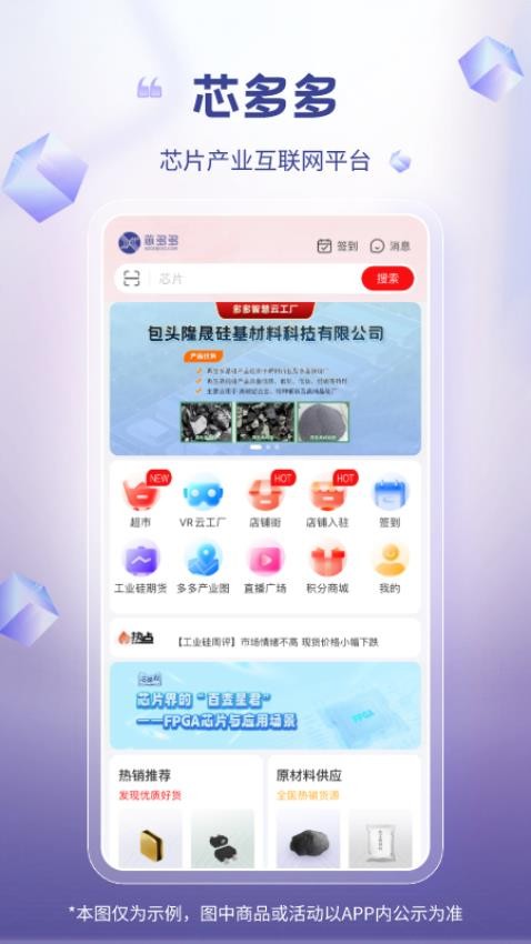 芯多多app是一款由国联控股推出的专业采购应用,专门服务于芯片、元器件等电子物料交易。它是一个精密零件集市,为各类科技厂商和数码产品企业提供了一个集中、可靠的批量采购渠道。平台不仅确保货源充足、新品丰富,更把复杂的传统产业采购,转化为清晰简便的在线流程,让企业用户能高效、安心地完成采购任务。