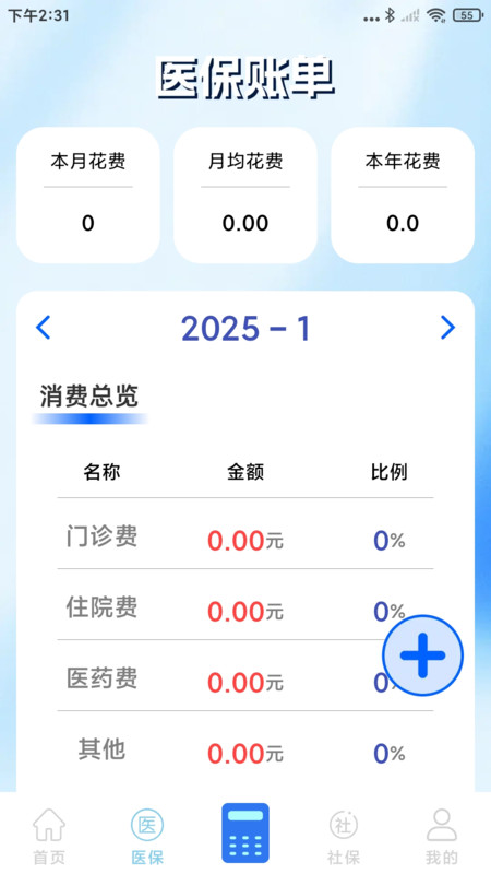 2、在医保页面进行记账,能生成并管理您的专属医保账单。