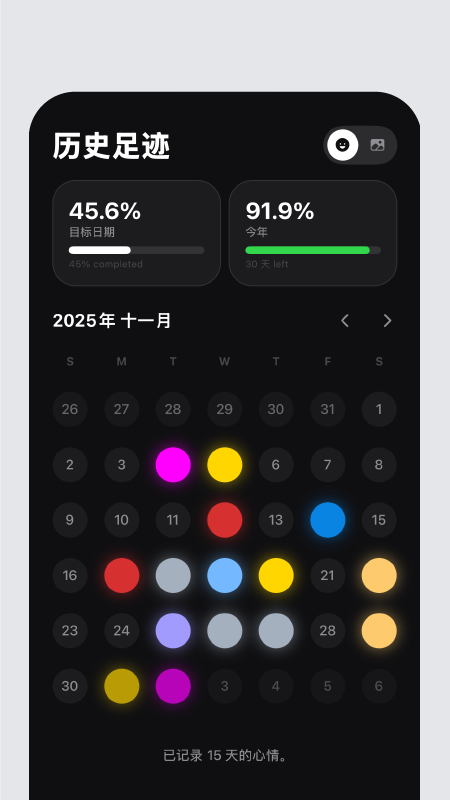3、可以直观的查看历史记录,掌握自己的情绪光谱;