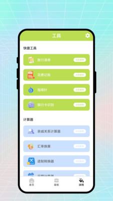 4、包含很多实用的快捷工具,旅行清单、花费记账、指南针等功能都有。